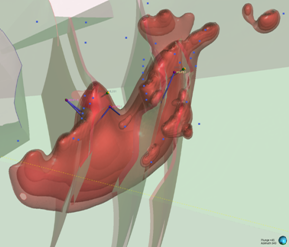 Figure 2: Series of oblique three-dimensional views of modelled of modelled Wishbone VMS Target showing location of Panther diamond drillholes (based on magnetic inversion model shells). Notes: Image highlights the size of the modelled magnetic body at depth. Blue dots signify permitted drill pads. For relative scale and description of other features please see the notes below Figure 1. |